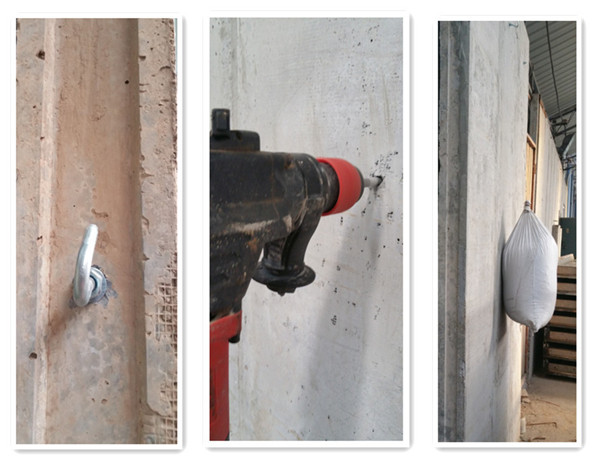 ★該墻板在任意部位打釘或上膨脹螺栓都能緊固而且可吊重物,如空調(diào)等,單點(diǎn)吊掛力在50Kg以上;